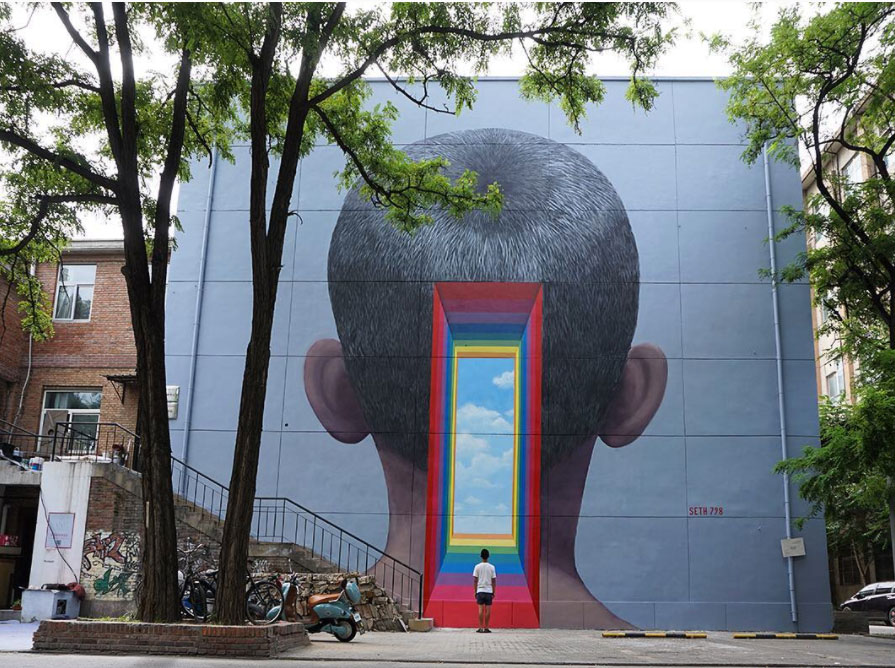 Il primo capitolo si è svolto in China: “Back to school China” ha visto murales di Seth e colleghi dalla poesia incantevole