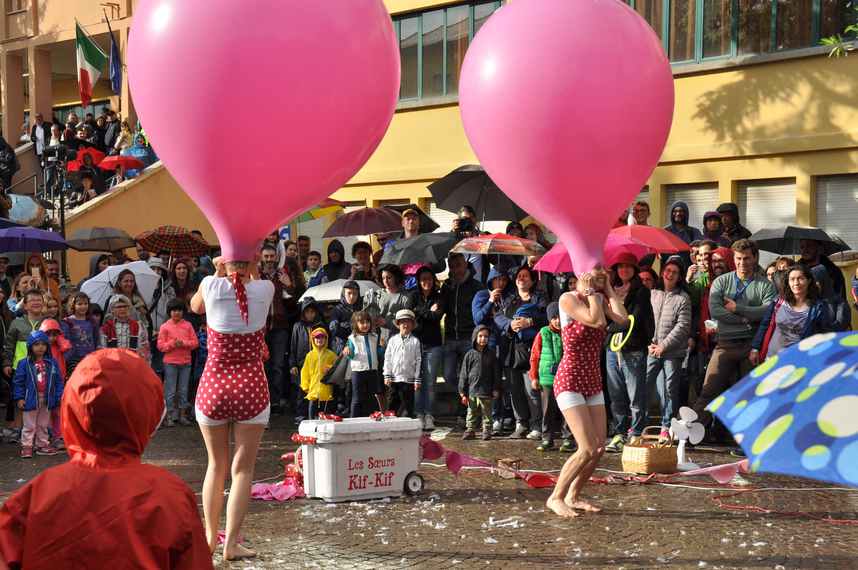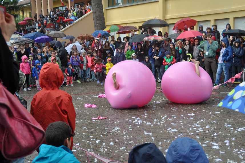 Mi soffermo su due numeri che ho visto sabato 4 giugno, giorno che ho visitato Artisti in Piazza. Sono esibizioni che ho apprezzato particolarmente, due vere e autentiche sensazioni d’arte. La pioggia intermittente non ha snaturato la bellezza delle due esibizioni che più mi sono piaciute, anzi, gli ombrelli e gli impermeabili hanno resto tutto più colorato e divertente.