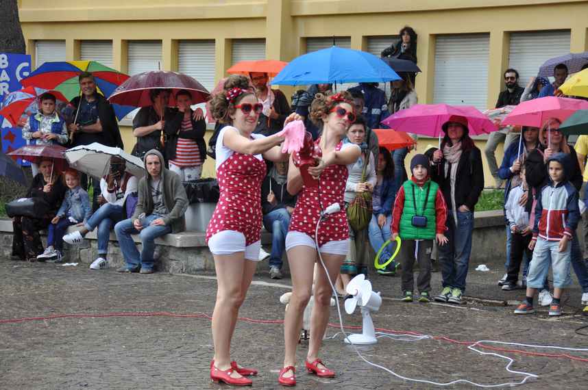 Mi soffermo su due numeri che ho visto sabato 4 giugno, giorno che ho visitato Artisti in Piazza. Sono esibizioni che ho apprezzato particolarmente, due vere e autentiche sensazioni d’arte. La pioggia intermittente non ha snaturato la bellezza delle due esibizioni che più mi sono piaciute, anzi, gli ombrelli e gli impermeabili hanno resto tutto più colorato e divertente.