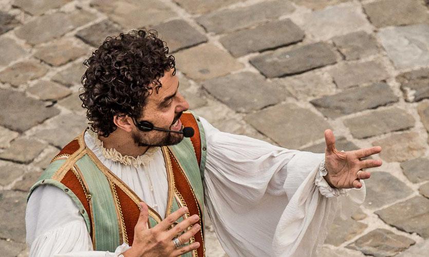 Durante la mia presenza non ho visto niente di tutto ciò. Attori, artisti e venditori nelle “pancarelle et botteghe” erano tutti assolutamente in linea con il contesto. Nessun dispositivo, nessun oggetto moderno in vista. La scelta degli articoli in vendita (giochi antichi, maschere di cuoio, utensili in terracotta, formaggi, miele, spezie, saponi artigianali…) erano collocate amabilmente sulla linea temporale.